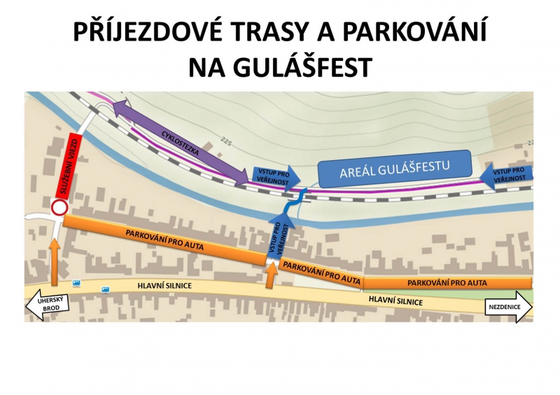 Bohužel u akcí tohoto rozměru jsme nuceni učinit z důvodů bezpečnosti i nějaké omezení týkající se dopravy v naší obci. V sobotu 13.5.2017 bude od 10:00 do večerních hodin pro dopravu úplně uzavřena ulice "směrem na Kamenný most" od čísla popisného 153 směrem k mostu. Tento zákaz neplatí pro obyvatele domů v této ulici a bude platit z důvodu zajištění případného naléhavého vjezdu např. záchranné služby na Gulášfest.