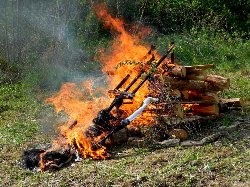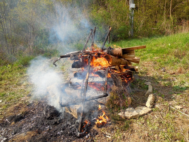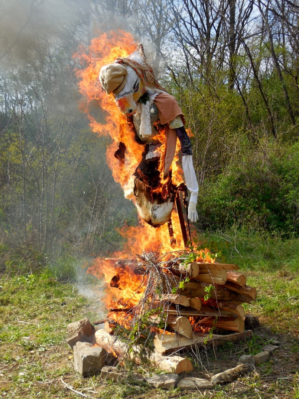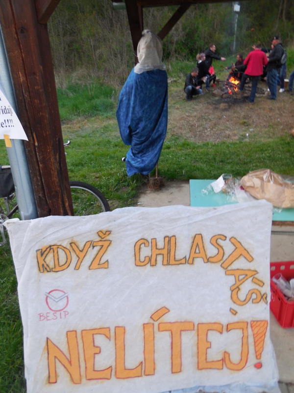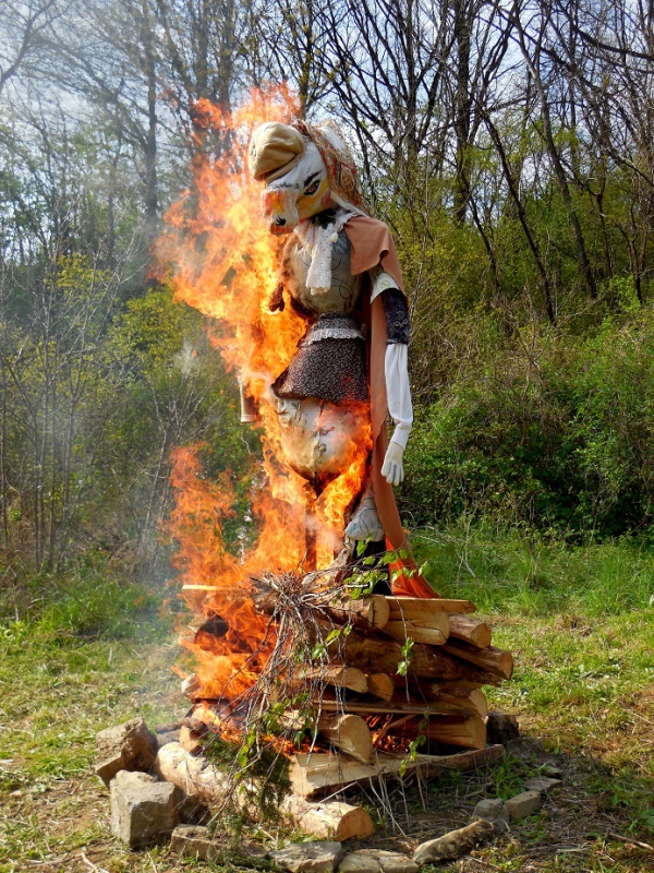 Při svitu hřejivých odpoledních paprsků slunce naše nejvyšší čarodějka zapálila hranici, na které byla umístěna slaměná čarodějnice v životní velikosti. Tímto činem oheň symbolicky zničil vše staré a ošklivé, pozůstatek temné části roku, aby toto uvolnilo místo pro stvoření nové, mladé, svěží a krásné, jak prastaré rituály ukládají. Po důkladném prohoření posloužil magický oheň k opečení špekáčků, které všechny soutěžící děti dostaly zdarma. Zde bychom za spolek Besedníci chtěli velmi poděkovat firmě VOMA s.r.o., která nám tyto špekáčky poskytla jako sponzorský dar, a to samé poděkování patří i firmě Linea Nivnice a.s. za džusíky, které jsme rovněž dětem rozdávali jako odměnu za soutěže. Když jsme u těch díků, ještě jeden velký dík patří dobrovolným hasičům Šumice, kteří zde dohlíželi na bezpečný průběh pálení. Jelikož „Skalka“ začínala jen pár metrů od hranice s čarodějnicí, tak kdyby se něco nepovedlo, zřejmě bychom měli největší „kouzelnou“ vatru, široko daleko.