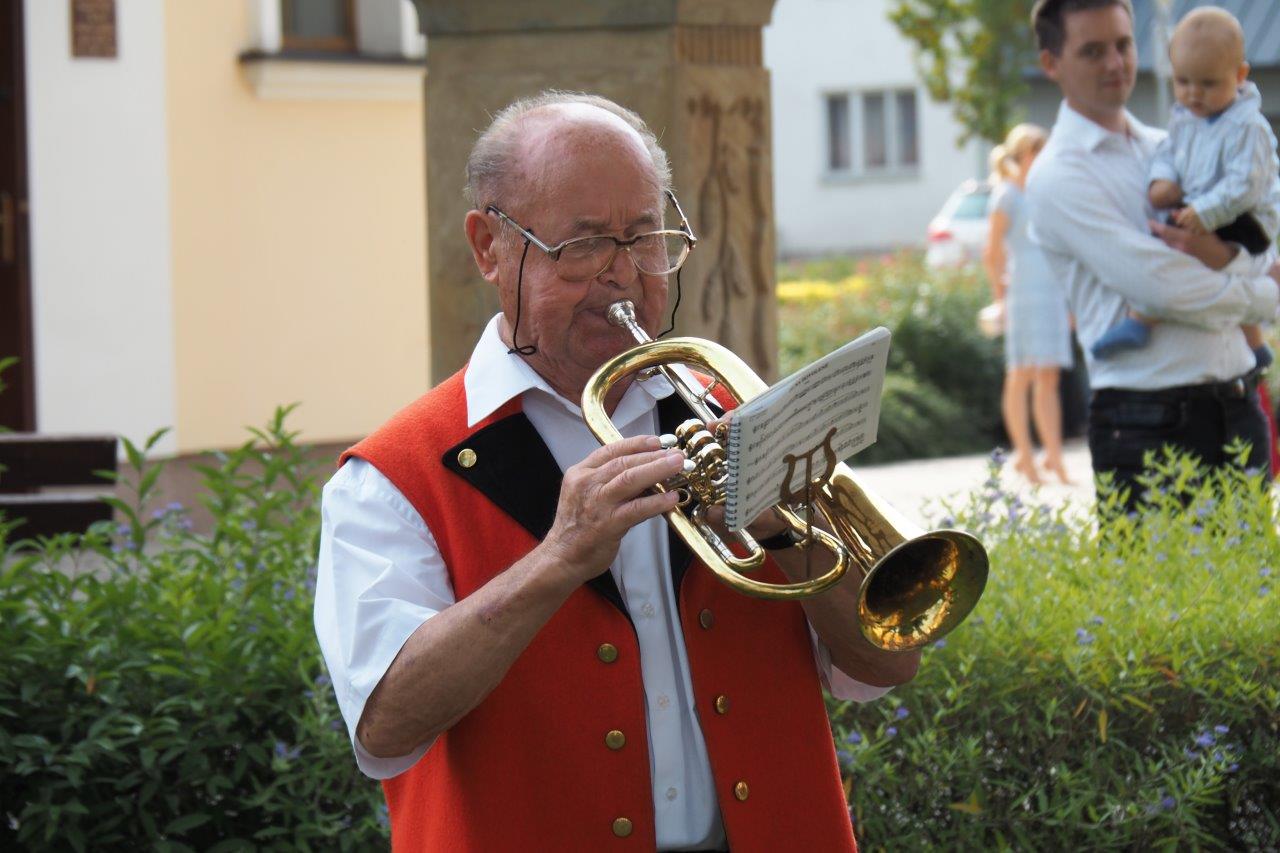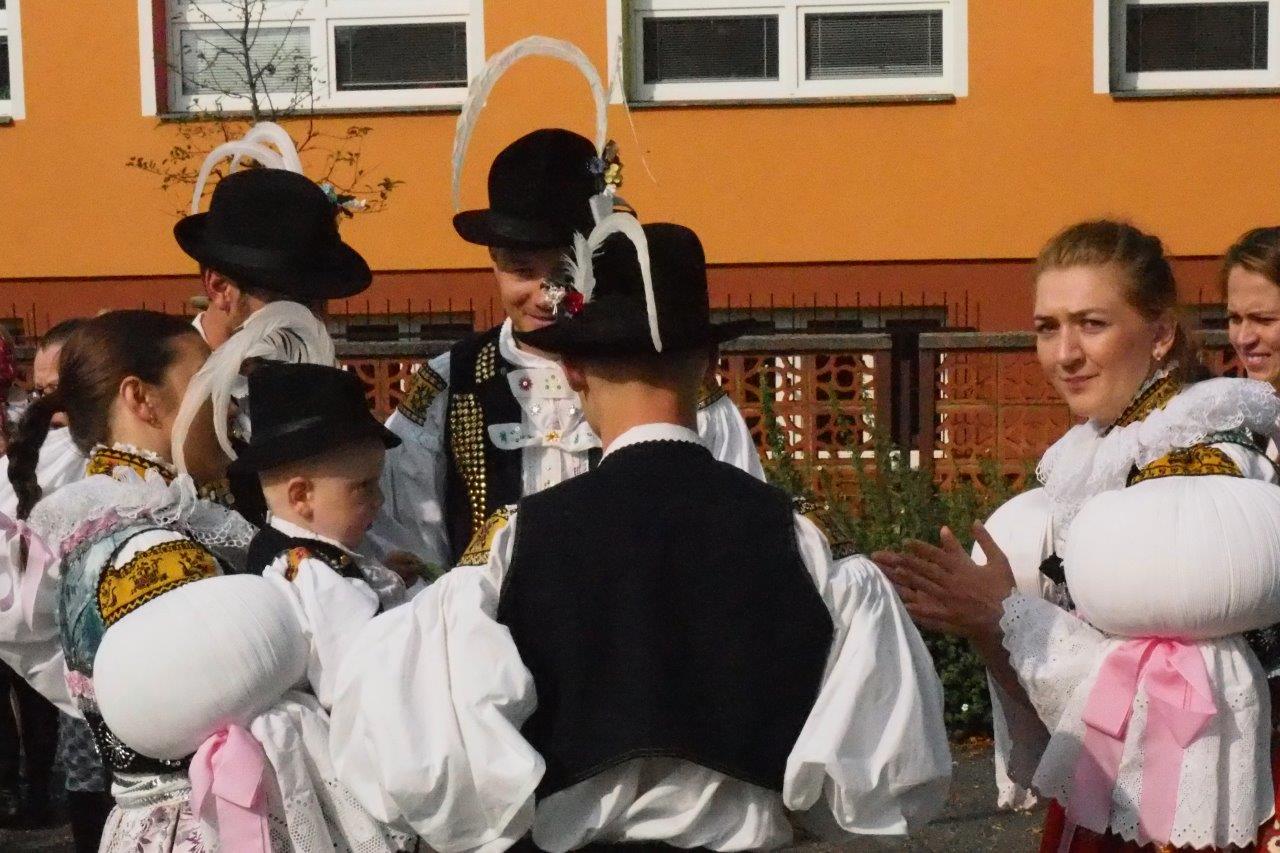 Dopoledne patří krojovaným, kteří se vyšňoří na hodovou mši do šumických krojů. Zejména oblékání kompletního ženského svátečního kroje není jednoduchou záležitostí. O to větší dík patří všem, kdo se do šumických krojů nastrojí a k nošení lidového kroje vedou i své potomky.