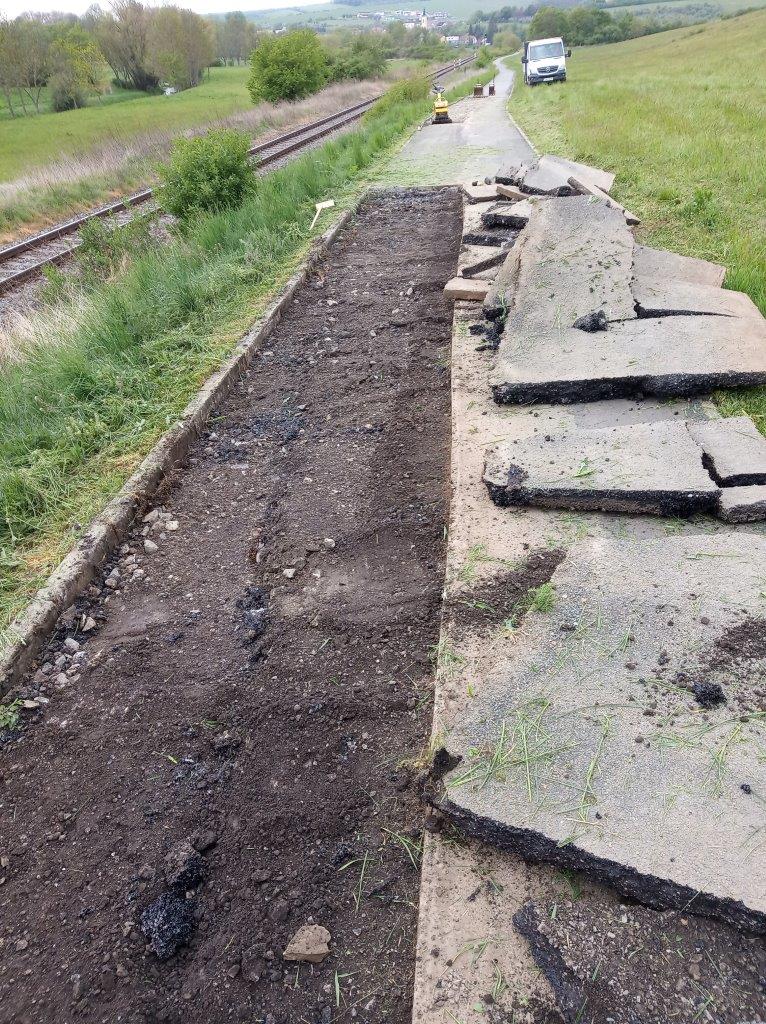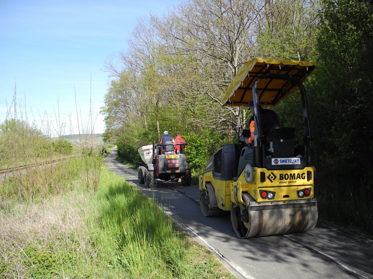 - v květnu jsme provedli opravu asfaltového povrchu nejhoršího úseku cyklostezky Šumice-Újezdec, v délce 440 m, to je 1000 m2 nového AB povrchu. Důvodem značného množství poruch povrchu v daném úseku je geologické podloží a svážné území. Náklady na stabilizaci svahu by vyšly na 10 mil. Kč. Stavební práce provedla společnost SWIETELSKY s.r.o. z Valašského Meziříčí, náklad 700 tis. Kč. Jak dlouho oprava vydrží v dobrém stavu dnes nikdo neví, stávající stav byl ale neudržitelný. Pod AB kryt byla položena vyztužovací mříž ze skelných vláken.