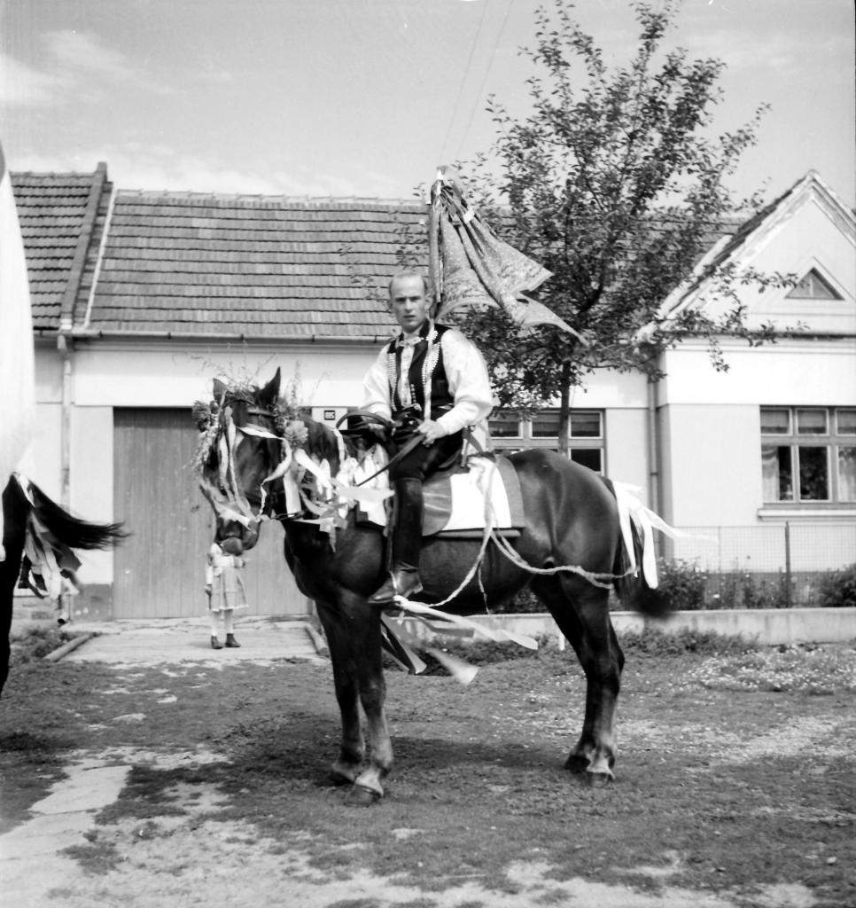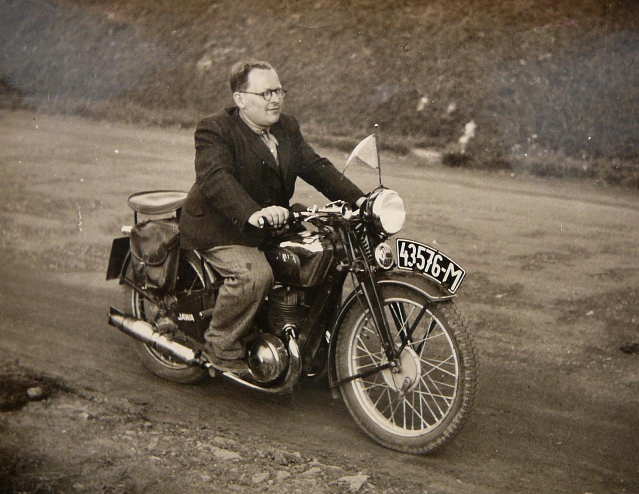 Autor fotografií, pan poštmistr Zděnek Opluštil je na fotografii s motocyklem JAWA. Některé fotografie koloroval Pavel Horalík.