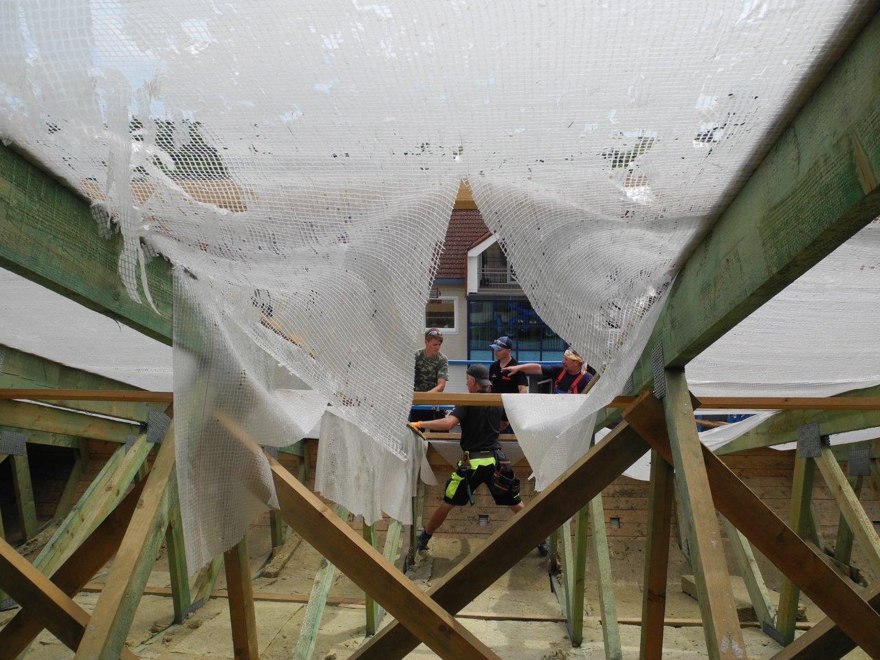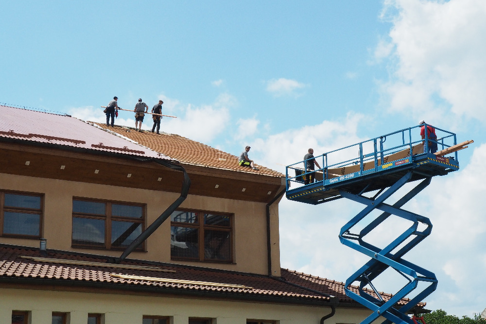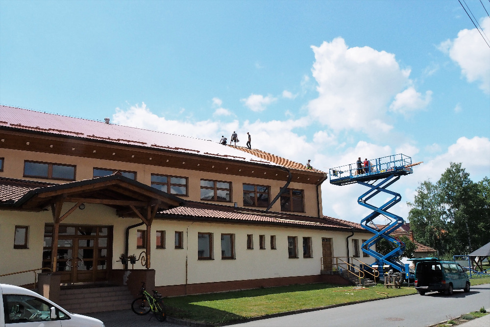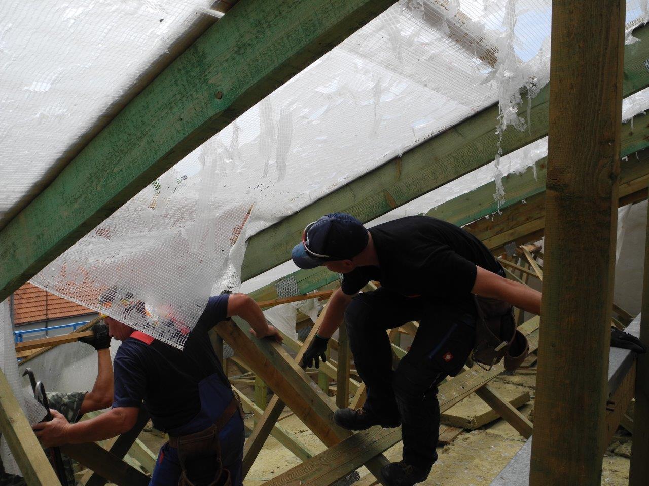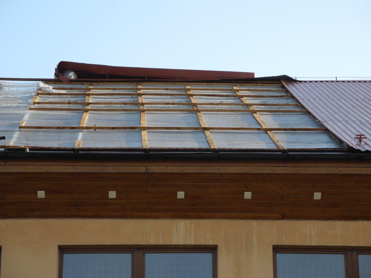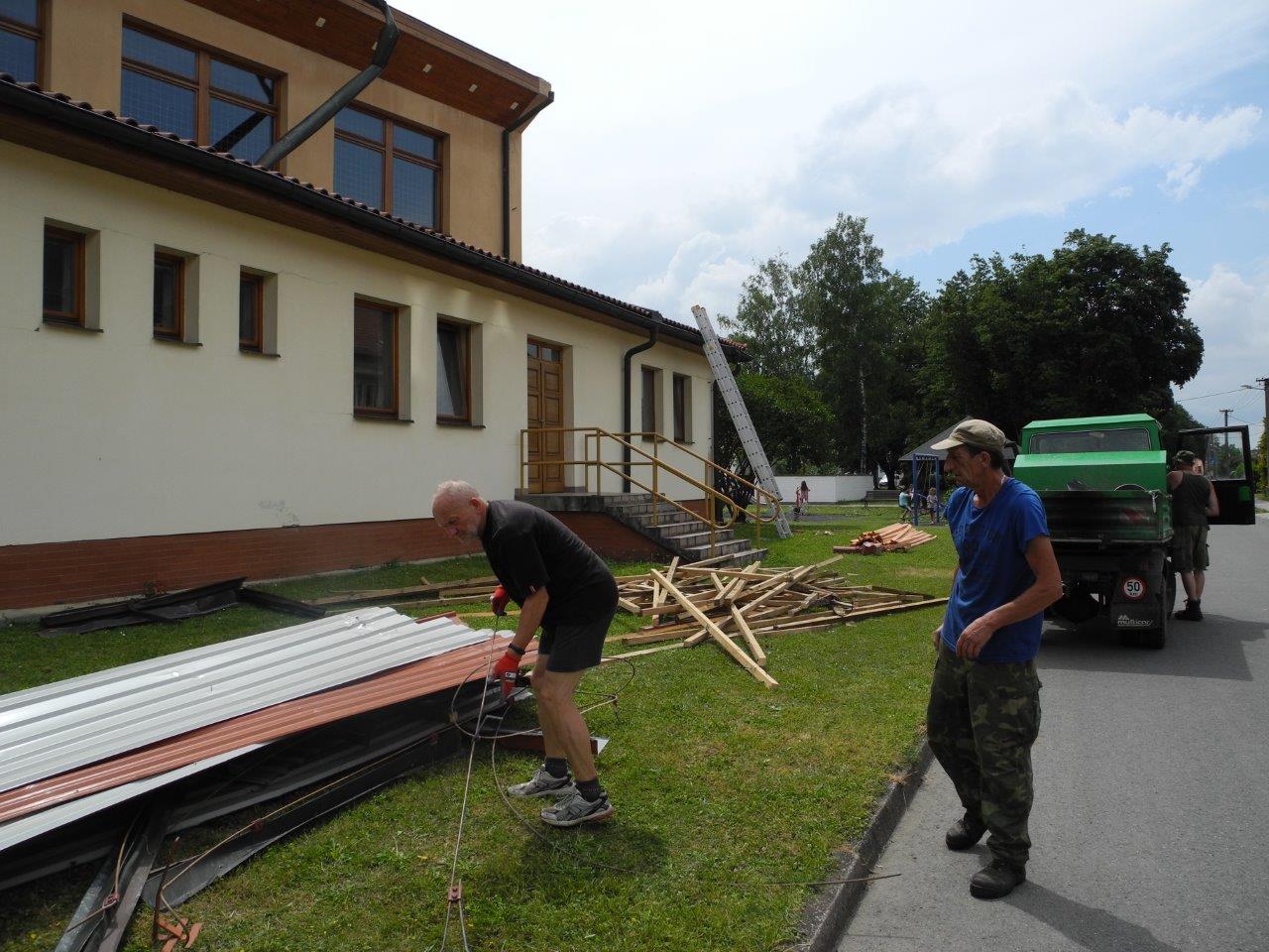 Zvláštní poděkování patří rodinné střechařské firmě STŘECHY ŽAMPACH s.r.o., panu Vojtěchu Žampachovi st. a jeho synům Vojtovi a Honzovi, kteří po každé kalamitní události akceptují žádost Obce Šumice a okamžitě nastoupí na opravu. Nebylo to poprvé. Opravu střechy tělocvičny dokončili s podporou členů jednotky SDH, kterým ještě jednou děkuji, během pátku a sobotního dopoledne. Finální oprava bude dokončena po dodání trapézových plechů asi do 2 týdnů. Důležité je, že do tělocvičny už nepoteče. Obec nahlásila škodní událost Hasičské pojišťovně, u které máme pojištěny všechny nemovitosti.