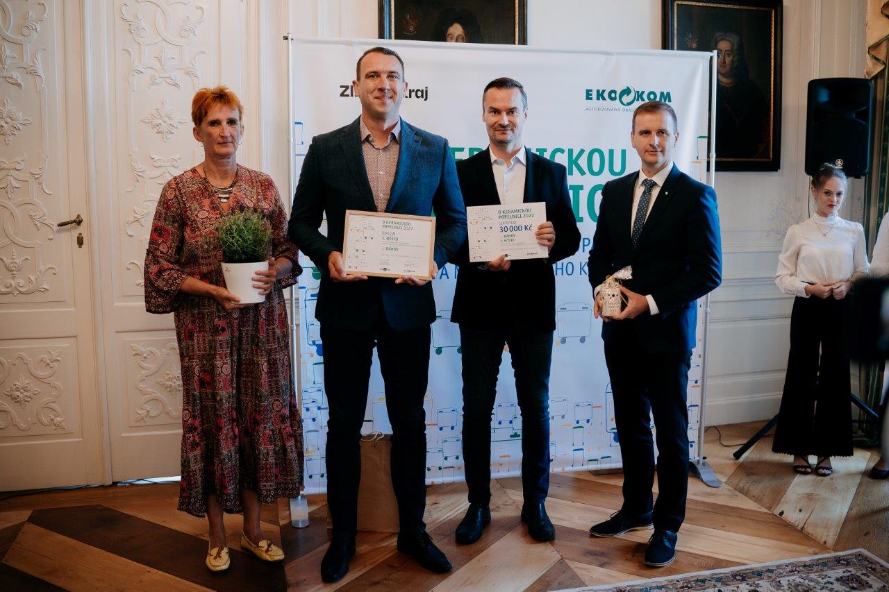 Lešná u Valašského Meziříčí (18. 5. 2022) – Obyvatelé Uherského Brodu, Šumic, Bánova a Kaňovic v loňském roce ve Zlínském kraji nejlépe třídili odpady. Zástupci obcí dnes na slavnostním ceremoniálu na zámku Lešná u Valašského Meziříčí převzali prestižní ocenění v soutěži „O keramickou popelnici.“ Tradiční krajské klání samospráv organizuje již pošestnácté Zlínský kraj ve spolupráci s Autorizovanou obalovou společností EKO-KOM, a.s., v rámci aktivit zaměřených na podporu tříděného sběru odpadu v regionu.