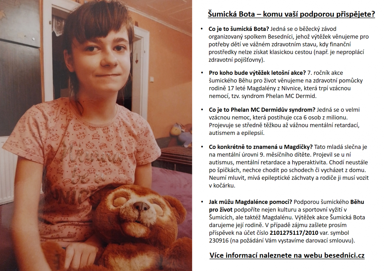 Besedníci oznamují, že 16. září se bude konat 7. ročník běžeckého závodu Šumická bota. Připraveno bude 5 tras, a to 20, 10 a 3 km, 3 km Nordic walking, a pro handicapované sportovce speciální trasa - „Vozíčkářské kolečko“. Více informací naleznete na www.besednici.cz
